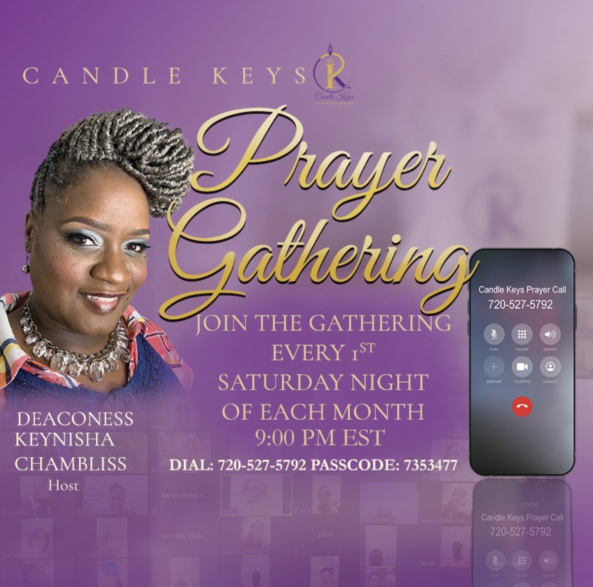 1st Saturday Night of every month: Prayer Conference Call or Prayer Gathering (In-Person meeting consisting of candle-making and prayer journaling)